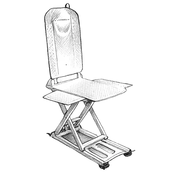 Diese Lösung funktioniert wie der Drehsitz. Zusätzlich kann die Person per Fernbedienung in die Wanne abgesenkt und die Rückenlehne nach hinten geklappt werden, so dass auch Baden möglich ist.