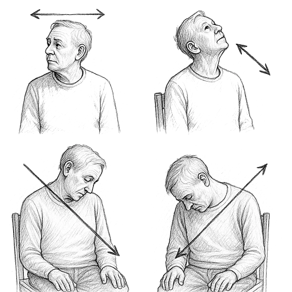 - 20 Sekunden lang kleine Kopfschüttelbewegungen („ja“ und „nein“)