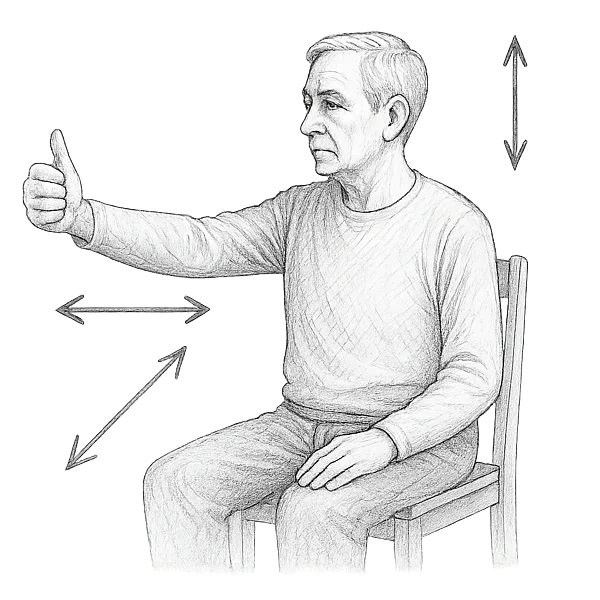 - Arm nach vorne strecken, Daumennagel mit dem Blick fixieren