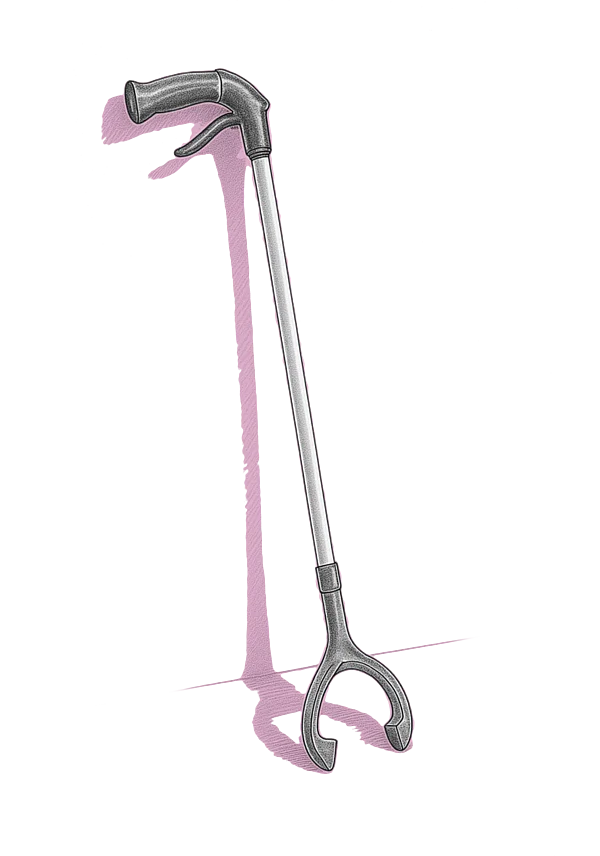 Die Greifhilfe, auch „Helfende Hand“ genannt, leistet gute Dienste beim Aufheben heruntergefallener Gegenstände und kann auch beim An- und Ausziehen hilfreich sein. Am unteren Ende der Stange sitzt eine Greifzange, am oberen Ende lässt sich am Griff der Mechanismus bedienen, um die Zange zu öffnen und zu schließen. Greifhilfen sind in unterschiedlichen Längen und mit verschiedenen Schließmechanismen erhältlich, und auch die Kraftübertragung ist unterschiedlich. „Mit einer Greifhilfe aus Kunststoff kann man nur leichte Gegenstände aufheben, mit einer robusteren auch schwere, wie etwa ein heruntergefallenes Handy“, erläutert Sibylle Liebchen. Die Ergotherapeutin arbeitet als Beraterin für Hilfsmittel bei „Barrierefrei Leben“. Der Hamburger Verein betreibt ein Informationsportal zu Hilfsmitteln im Internet.