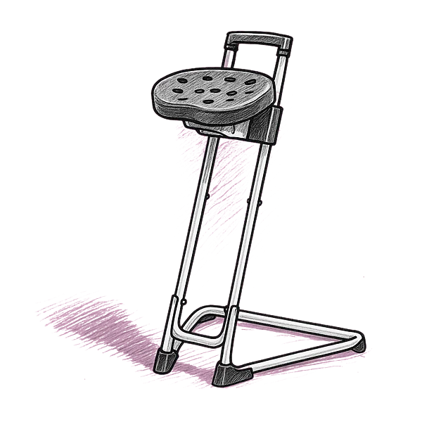 Wenn längeres Stehen schwerfällt, bringt eine Stehhilfe Erleichterung. „Sie dient der Teilentlastung der Gelenke und kann Schmerzen vermeiden“, benennt die Ergotherapeutin die Vorteile. Eine Stehhilfe ist höher als ein normaler Stuhl und lässt sich individuell auf die Körpergröße der oder des Nutzenden einstellen. Eine Stehhilfe macht es zum Beispiel möglich, an einer Arbeitsplatte in der Küche oder am Bügelbrett zu stehen oder sich im Bad vor dem Spiegel zu rasieren.