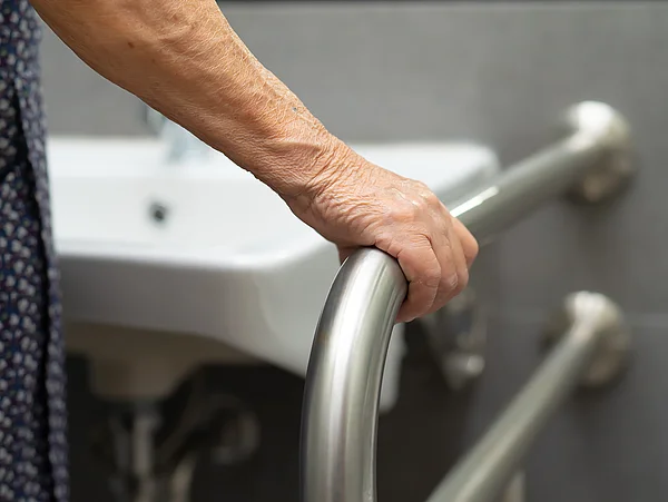 Boden-Decken-Stangen lassen sich multifunktionell einsetzen, zum Beispiel in der Badewanne als Einstiegs- oder an der Toilette als Aufstehhilfe. Diese Stangen werden zwischen Fußboden und Decke mit Schrauben montiert, manche auch nur dazwischen geklemmt. „Wie auch bei den Haltegriffen, kommt es auf die Bausubstanz an“, sagt Liebchen. „Man muss schauen, was überhaupt möglich ist.“ Trockenbauwände müssen von vornherein verstärkt sein. Praktisch sind auch Toilettensitze mit starren oder klappbaren Haltegriffen.